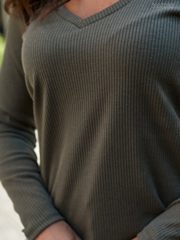 Подробиці: Светр з V-подібною горловиною та довгим рукавом.