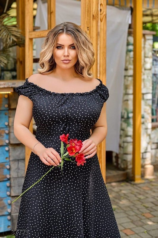 Летнее платье в горошек 37771 черный