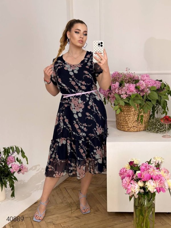 Платье шифонофое больших размеров. Ткань: шифон плюс подклад из софта.