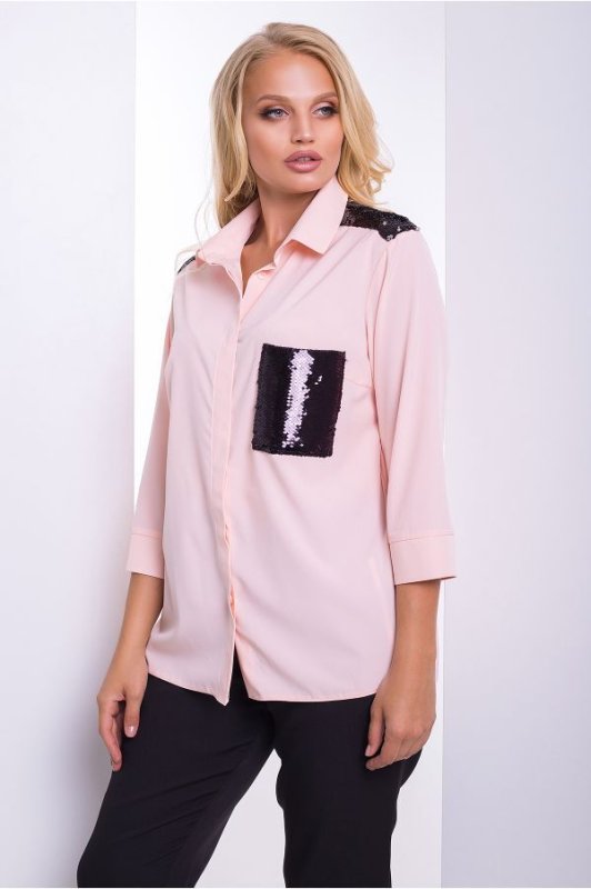 Легкая и красивая женская блуза Кифа придаст любому образу очарование и оригинальность. Изделие украшает актуальная в этом сезоне пайетка-перевертыш. Застегивается на пуговицы, скрытые под планкой. Спинка незначительно удлинена, по бокам неглубокие разрезы.¶ Размеры Длина изделия Длина рукава¶ 50 72 см 44 см¶ 52 73 см 44 см¶ 54 74 см 44 см¶ 56 75 см 44 см