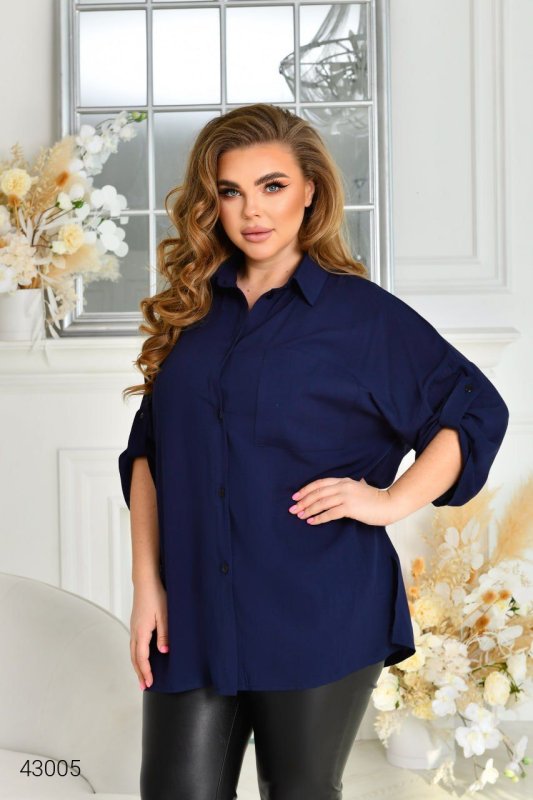 Женская рубашка больших размеров 43005 темно-синий