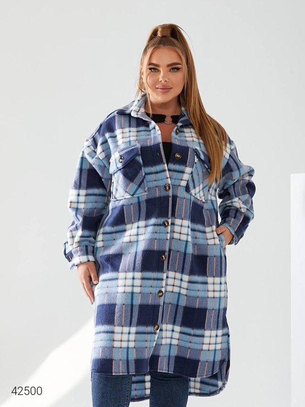Женская рубашка удлиненная. Рубашка в стиле оверсайз, удлиненного кроя с закругленными разрезами по бокам. Рубашка застегивается на пуговицы. На груди объемные и функциональные карманы, по бокам врезные карманы. Рукав на манжете.