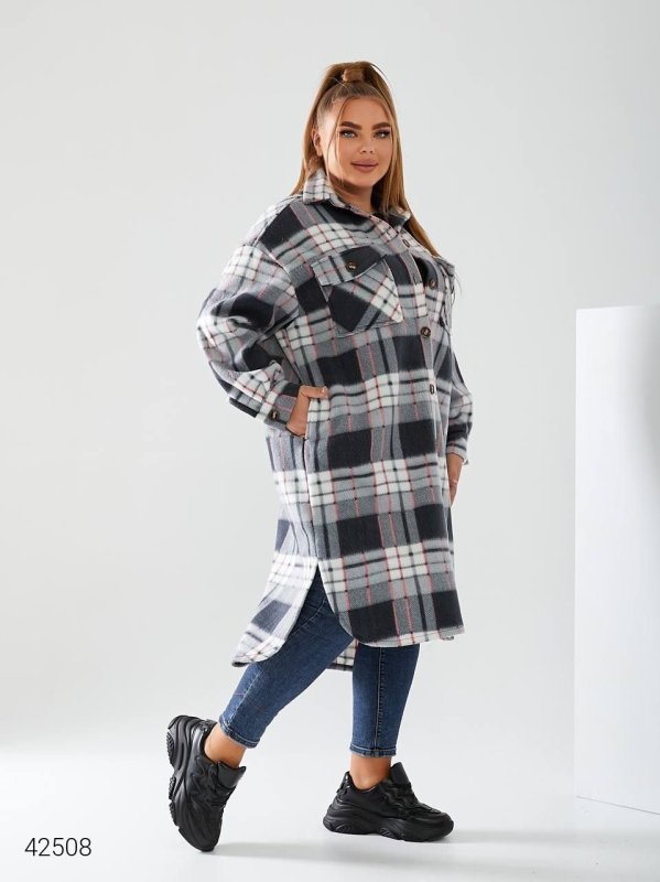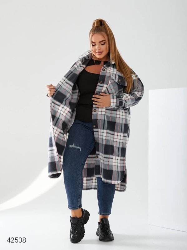 Женская рубашка удлиненная. Рубашка в стиле оверсайз, удлиненного кроя с закругленными разрезами по бокам. Рубашка застегивается на пуговицы. На груди объемные и функциональные карманы, по бокам врезные карманы. Рукав на манжете.