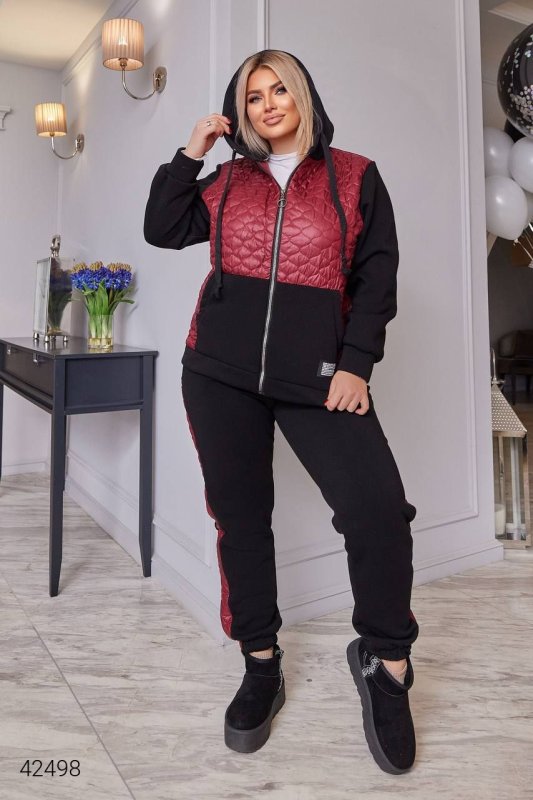 Женский теплый костюм. Кофта застегивается на молнию, с удобными карманами и капюшоном. Брюки с высокой посадкой, низ на манжете (резинка).