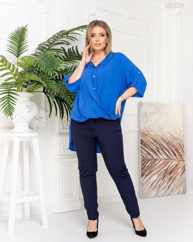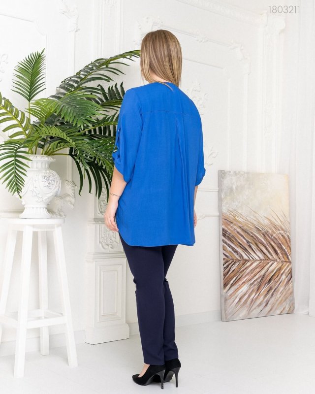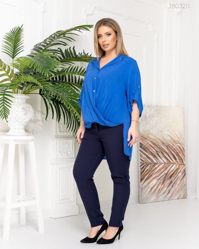 Деталі: оригінальний крій, відкладний комір, широкий рукав з патою на гудзику, асиметрична довжина виробу.