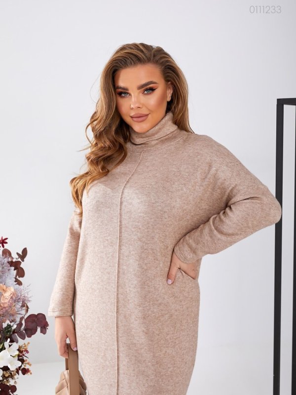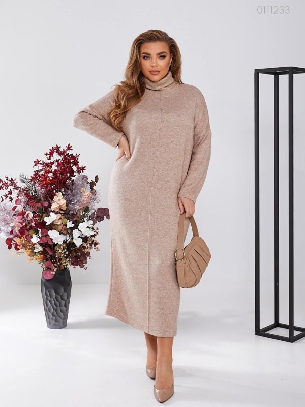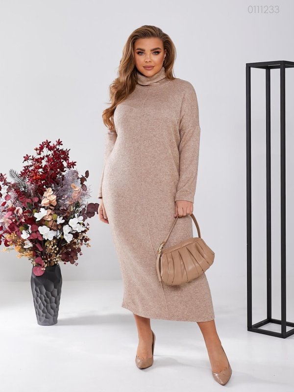 Бежева сукня Лімбург з подвійним високим горлом