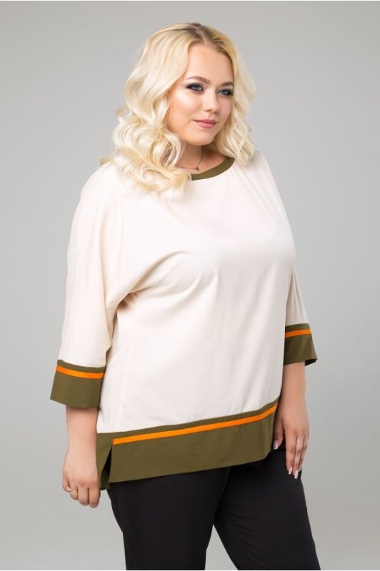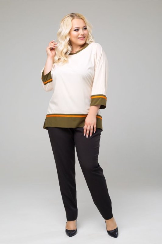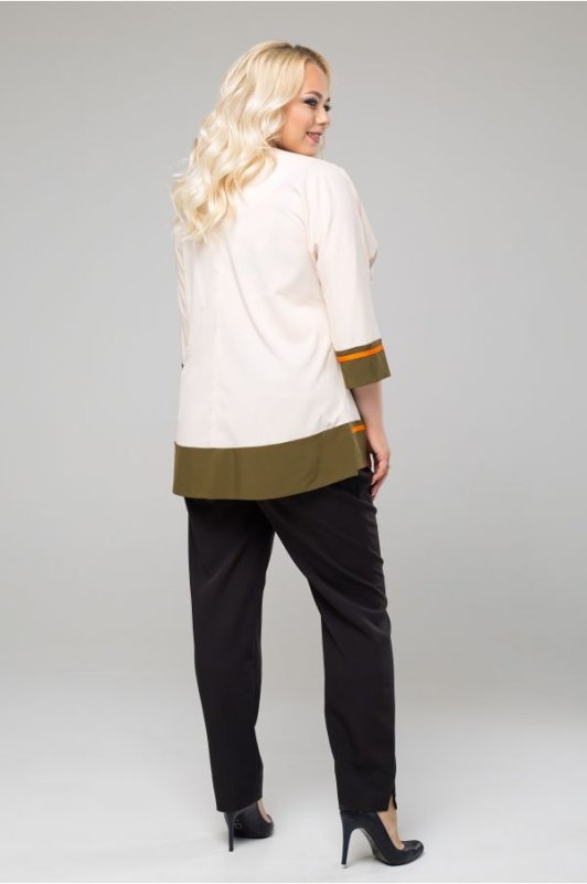Лаконічна і елегантна жіноча блуза Дора прикрашена контрастними вставками, які відмінно гармонують з дизайном вироби. Модель застібається по спинці на декоративні ґудзики. По боках неглибокі надрізи.