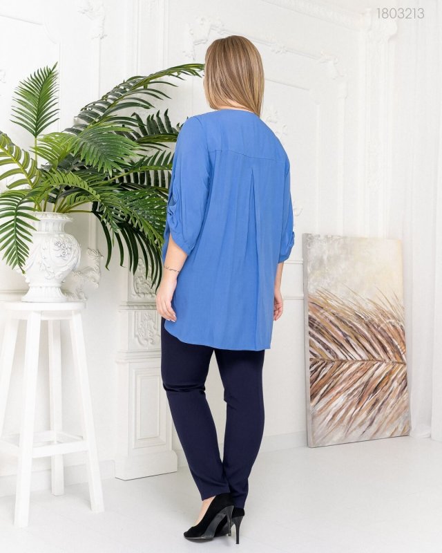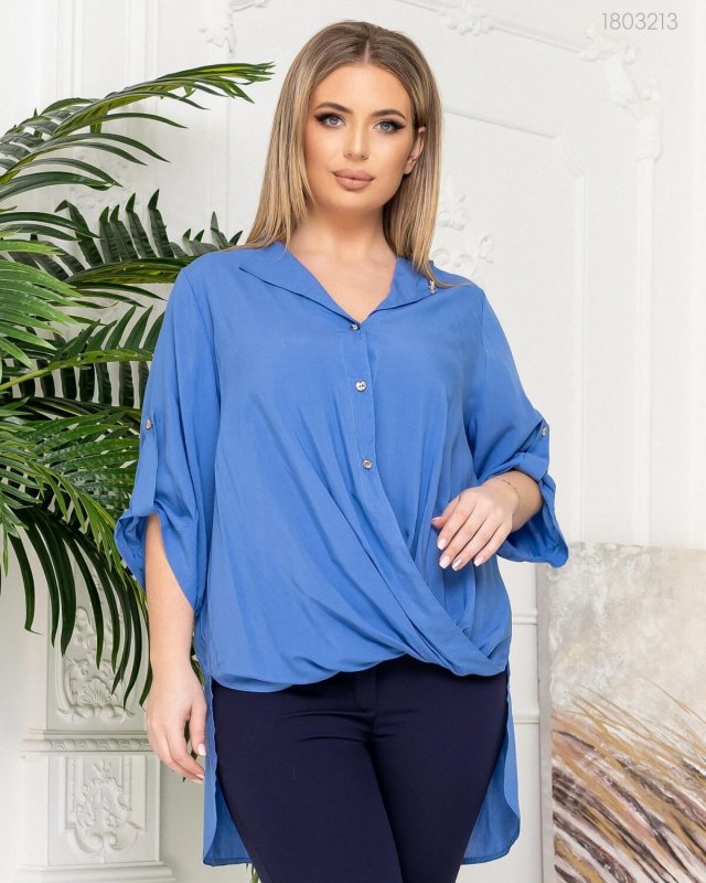 Деталі: оригінальний крій, відкладний комір, широкий рукав з патою на гудзику, асиметрична довжина виробу.