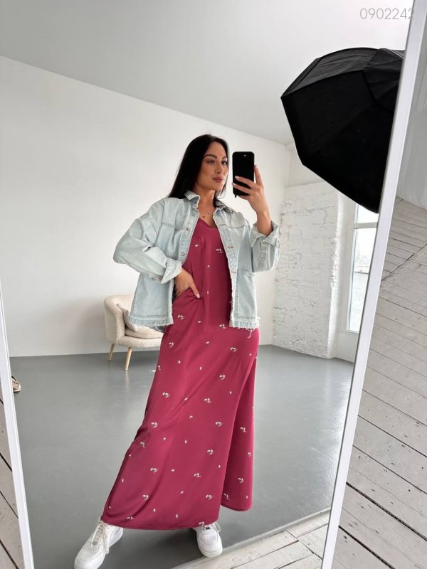 Деталі: Сукня А-силуету довжиною максі. V-подібне декольте, широкі бретелі.