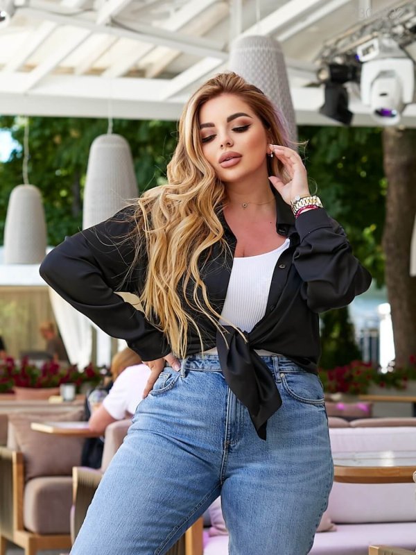 Чорна шовкова блуза Мармі