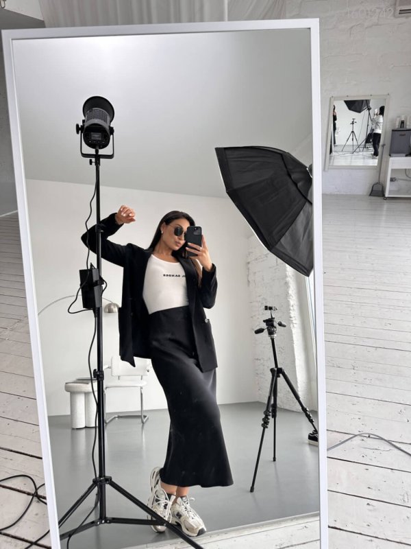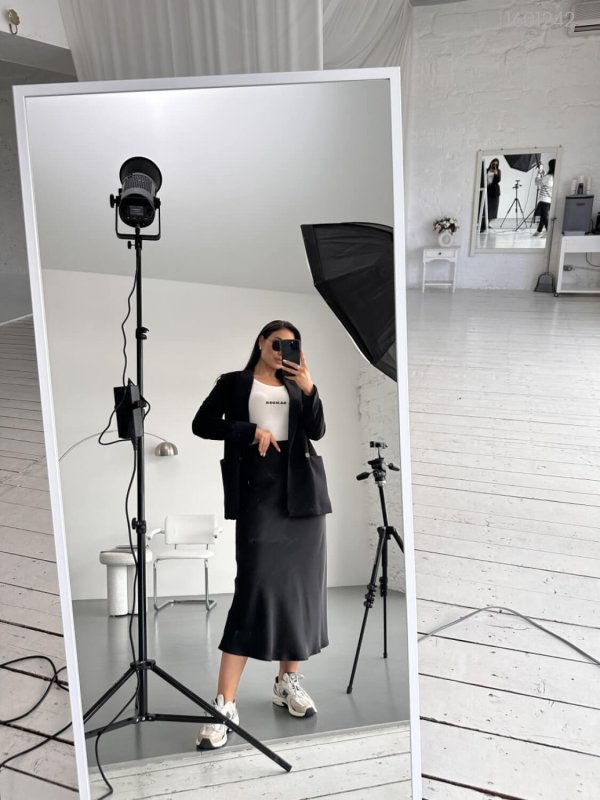 Деталі: спідниця покроєна по косій, за рахунок чого набуває форми тіла, з поясом на гумці, без кишень.