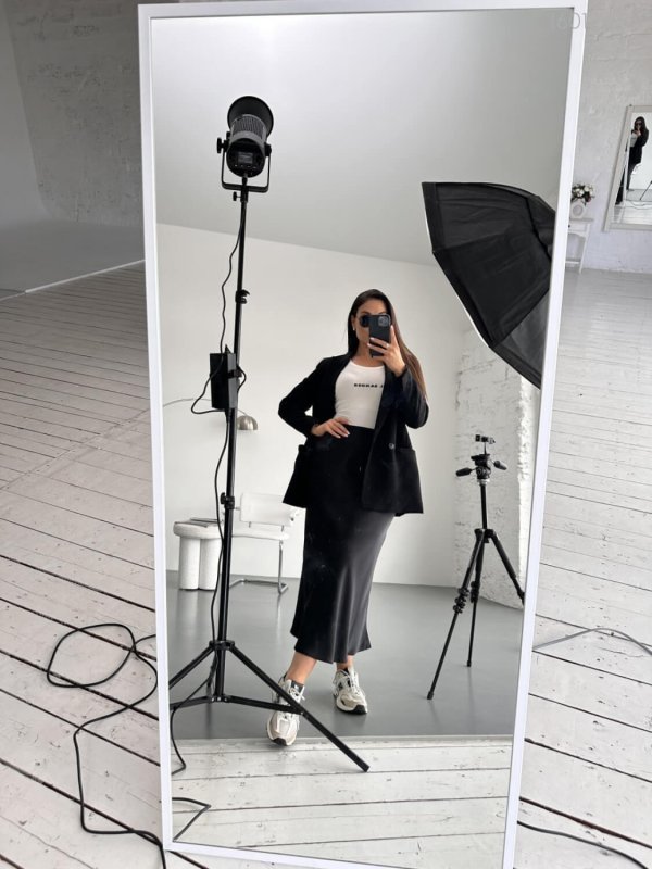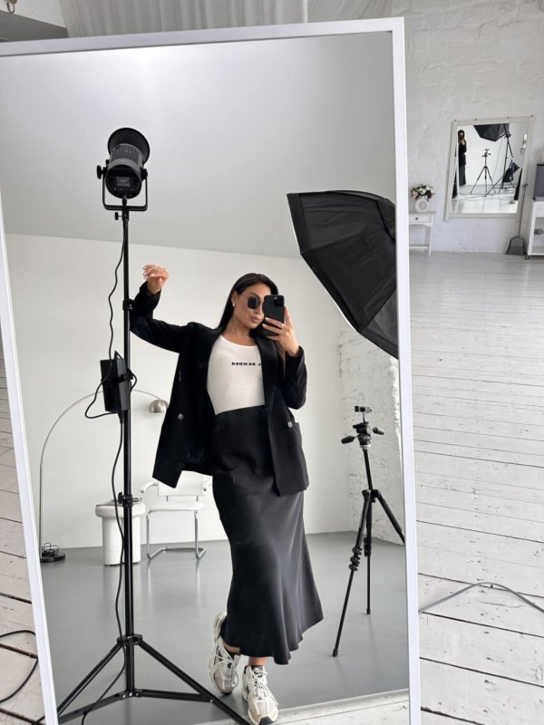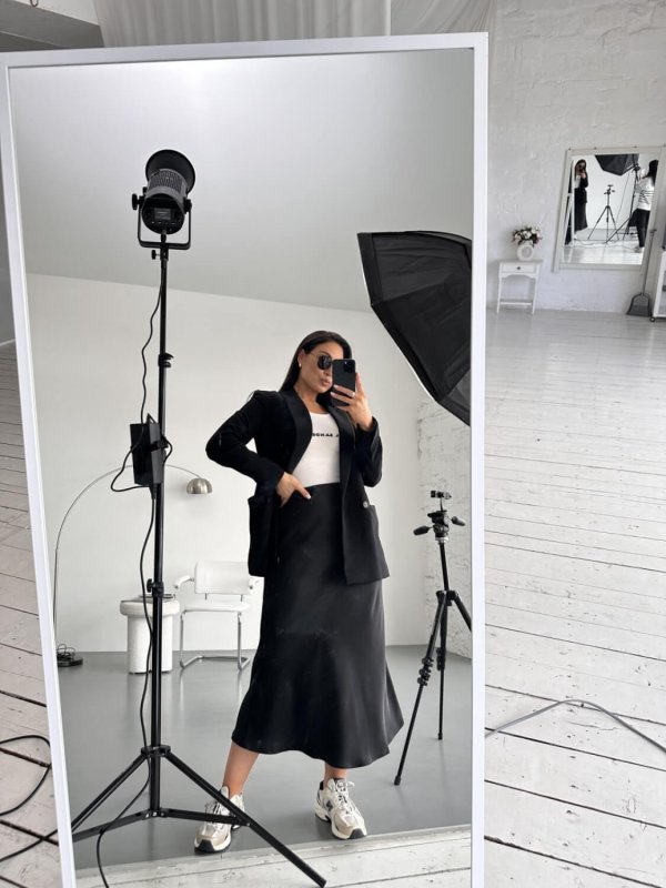 Чорна спідниця №5 із шовк-сатину