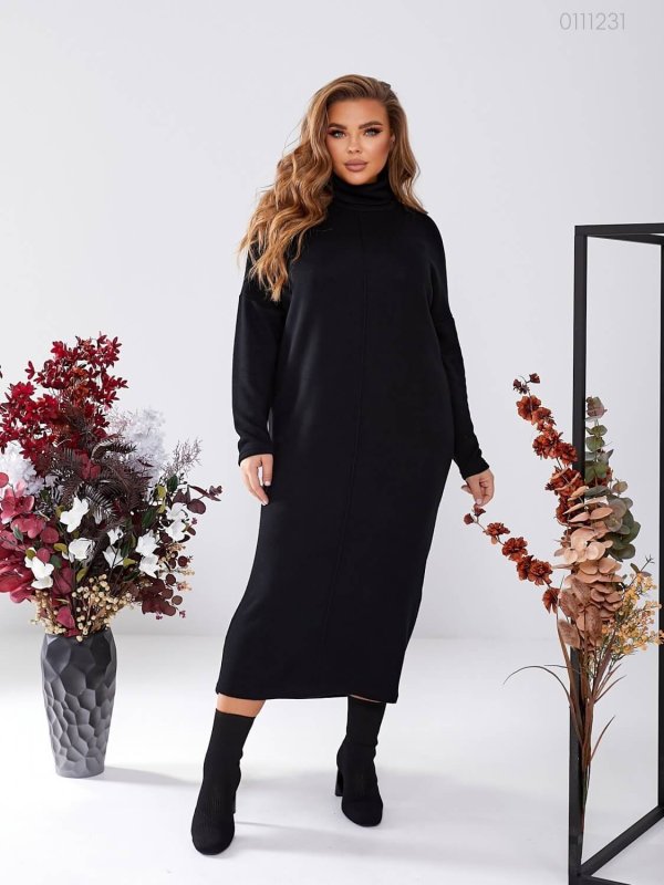 Деталі: силует кажана, спущене плече, довгий рукав, високе подвійне горло, довжина максі.