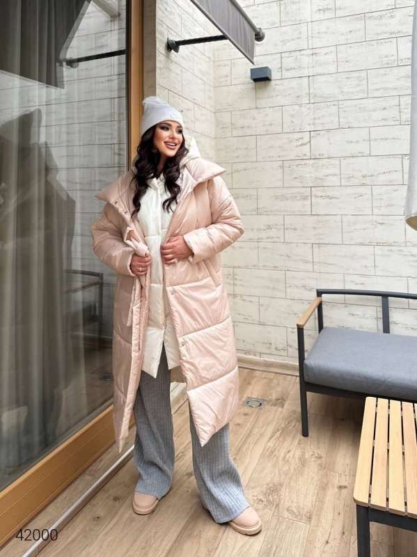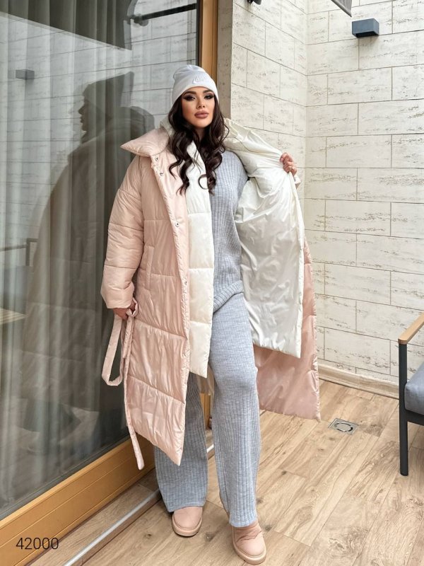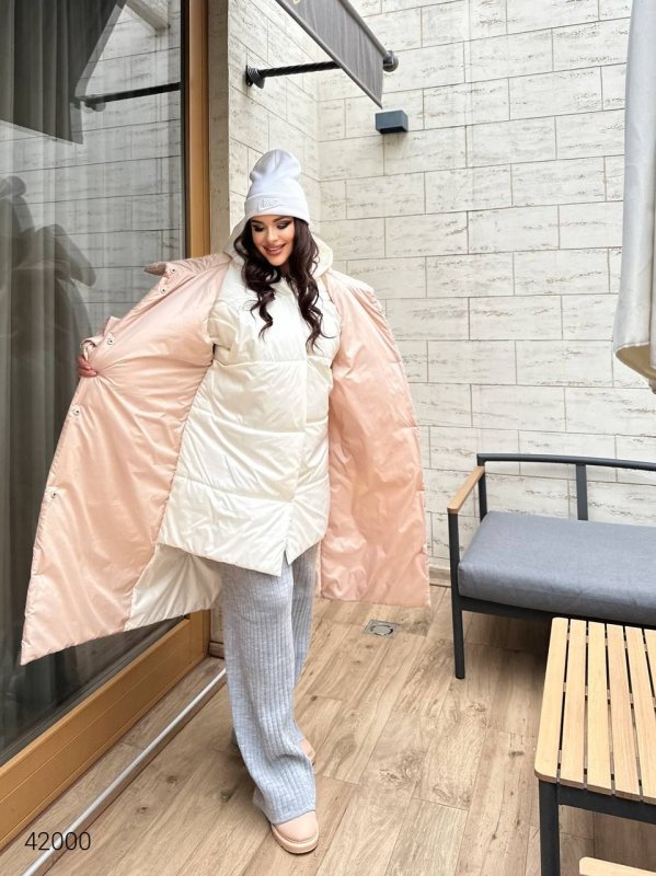 Подвійне жіноче стьобане пальто 42000 бежевий