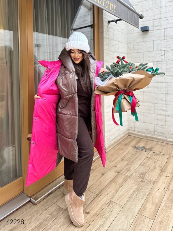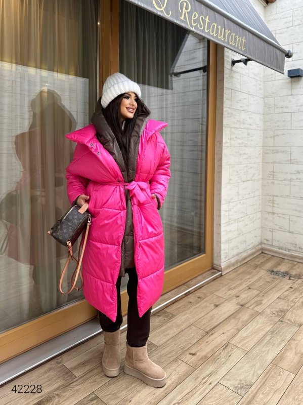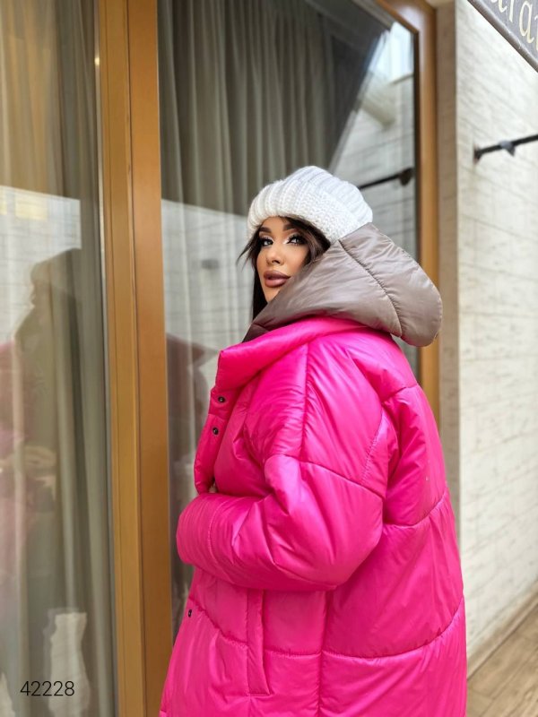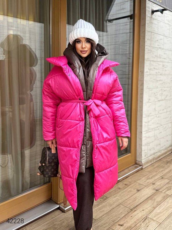 Подвійне жіноче стьобане пальто 42228 малиновий