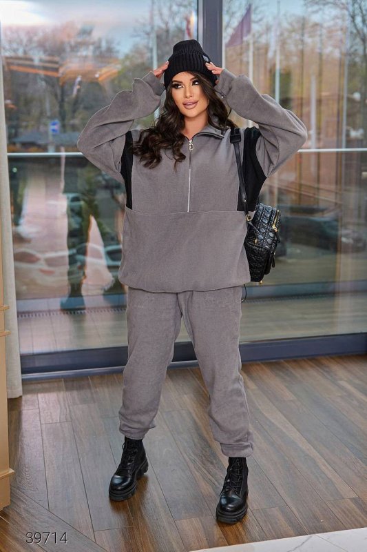 Флісовий жіночий костюм. Кофта оверсайз, знизу шнурок. Штани на резинці, кишені. Тканина: турецький полар фліс коламбія, м'яка і дуже тепла.