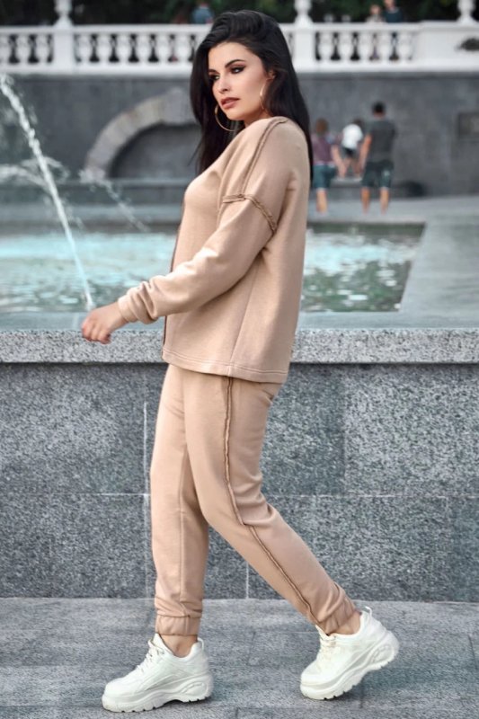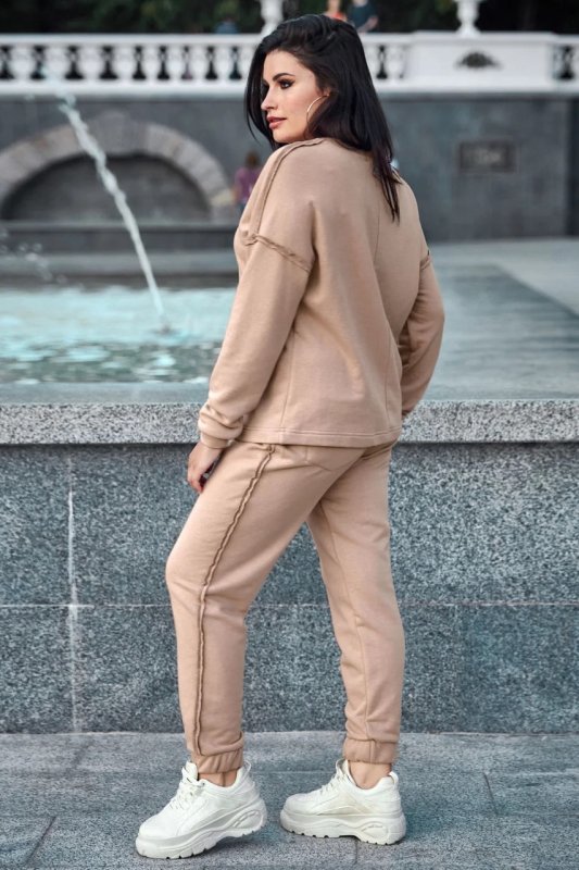 Колекція Goodbye summer plus size радує новою стильною новинкою для літнього та демісезонного гардеробу – костюм вільного крою забезпечує спортивний чи повсякденний образ за останніми модними трендами. Особлива особливість моделі - шви на лицьовій стороні та накладні кишені на штанах з високою посадкою.
