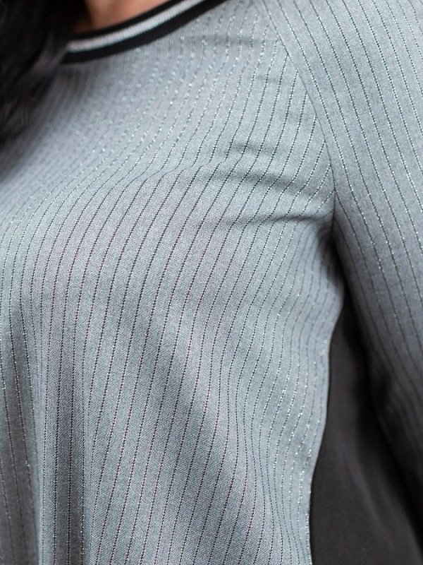 Кофта вільного крою, на горловині і рукавах довяз з металлонітью. Нижня частина полички з еластичною вставкою і регулюванням стрічками. Спинка злегка подовжена, по центру стрічка з металевим декором.