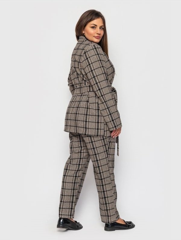 Неймовірно стильний брючний костюм в клітку з теплої костюмної тканини зі значним додаванням вовни.