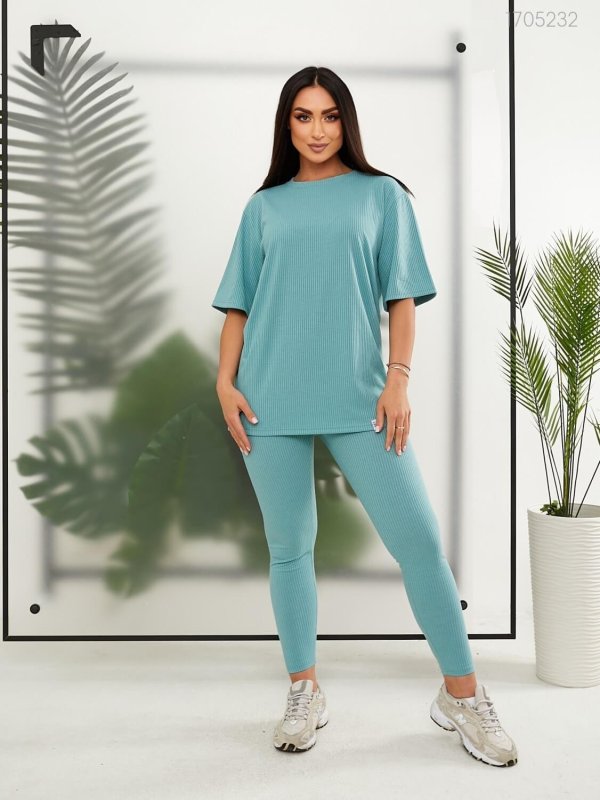 Деталі: подовжена футболка у стилі oversized та легінси високої посадки.