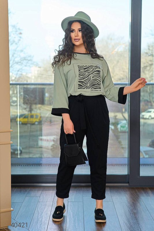Костюм жіночий. Кофта та штани. Кофта з принтом «зебра»+декор із каменів, штани на резинці. Тканина: кофта-трикотаж лакоста з додаванням бавовни, виробництво Туреччина (хороша розтяжність, м'яка та приємна), штани - креп дайвінг.