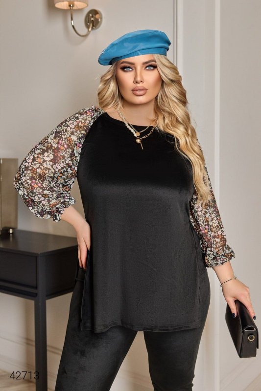 Тканина: велюр-спорт (на бавовняній основі), рукава - шифон.