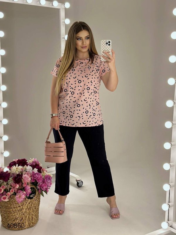 Жіночий костюм великих розмірів. Штани на резинці. Тканина: блуза-софт, штани - масло.