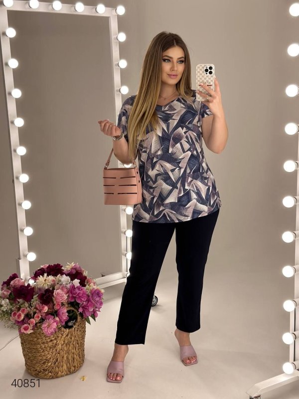 Жіночий костюм великих розмірів. Штани на резинці. Тканина: блуза-софт, штани - масло.