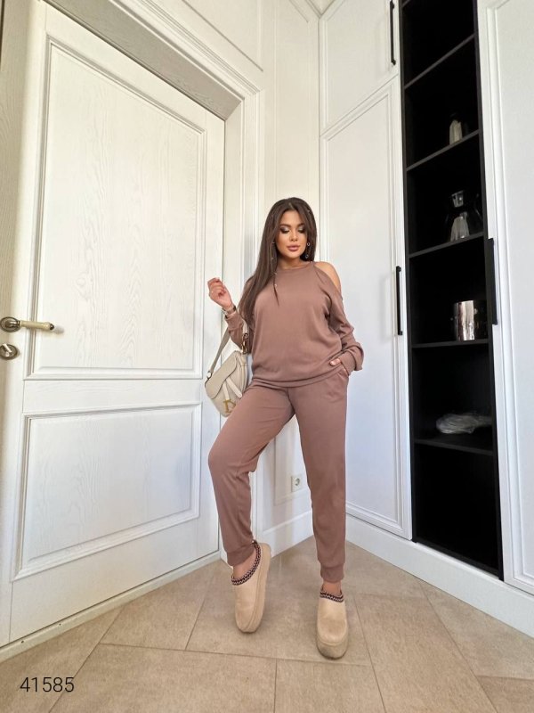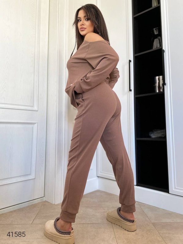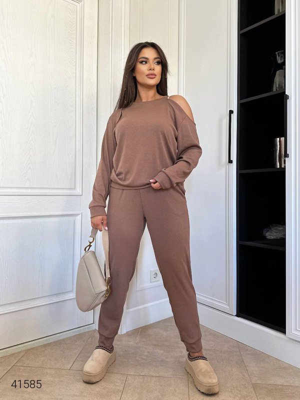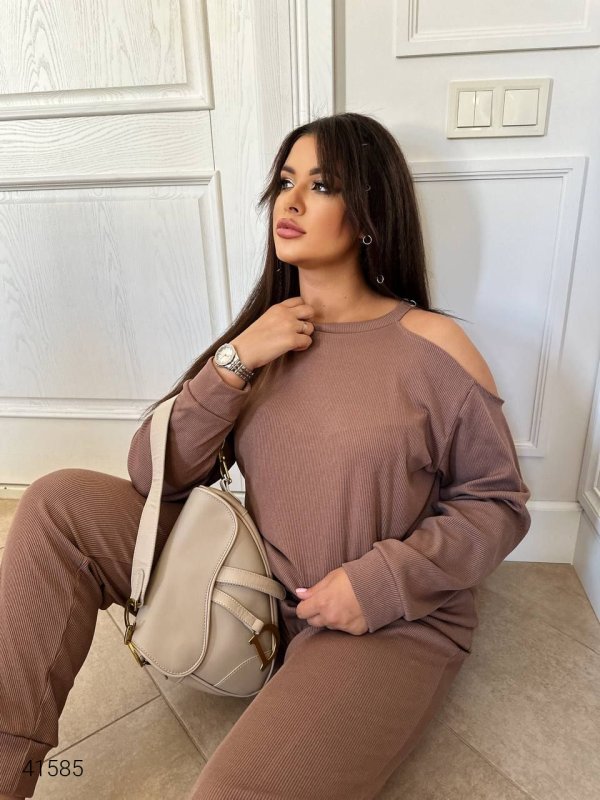 Жіночий костюм великих розмірів. Кофта з відкритим плечем та штани.