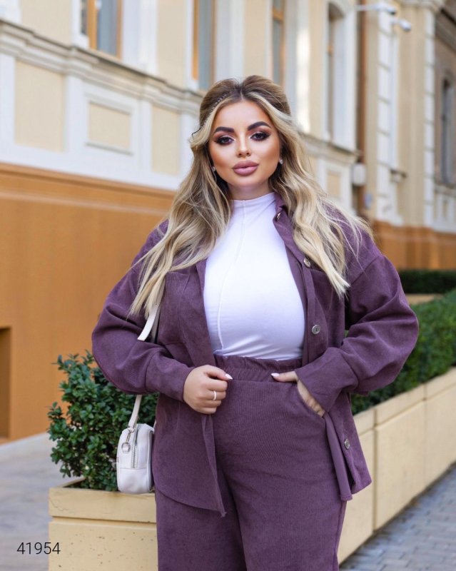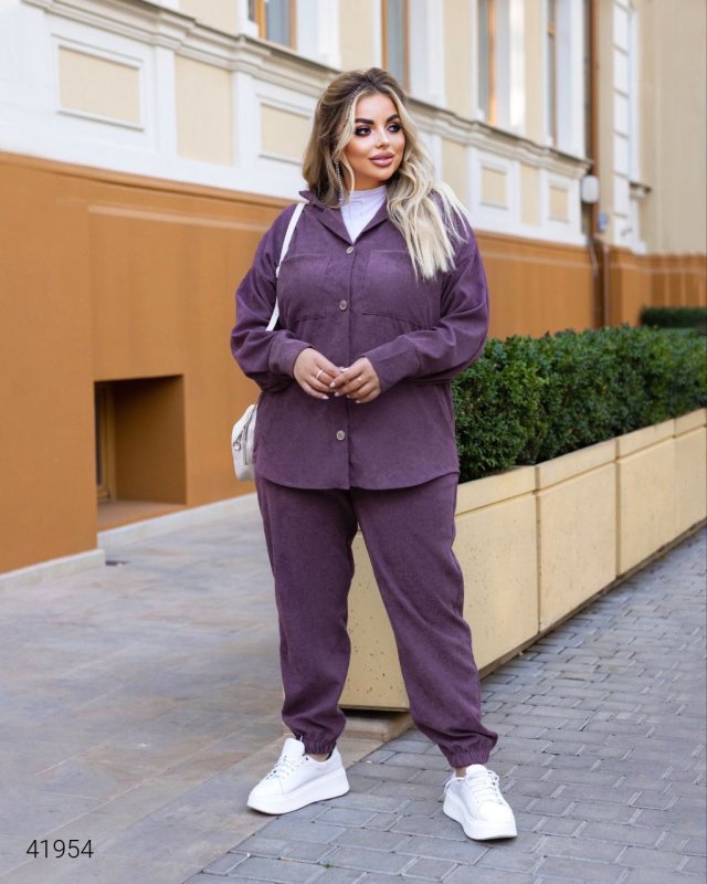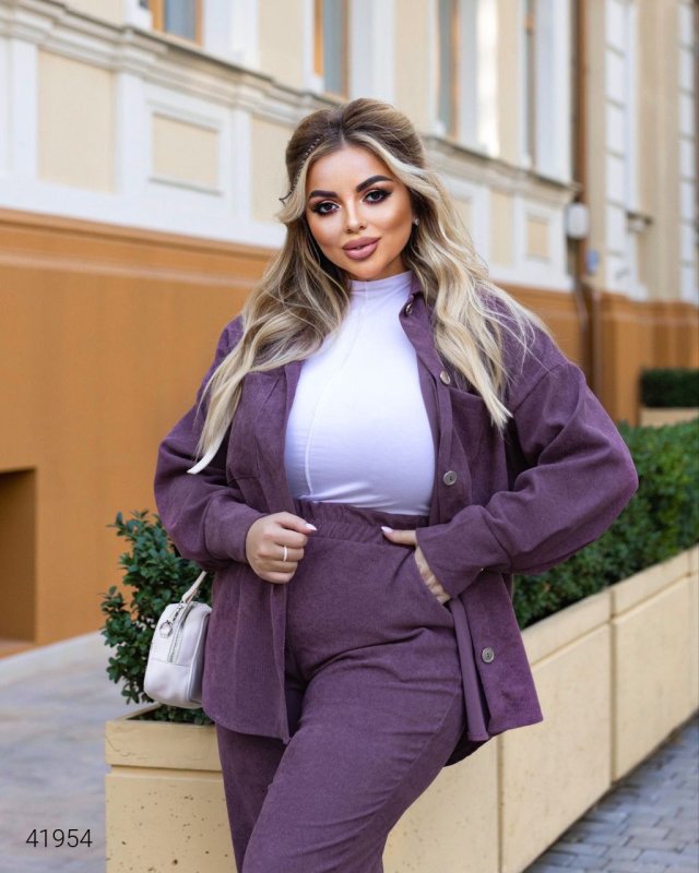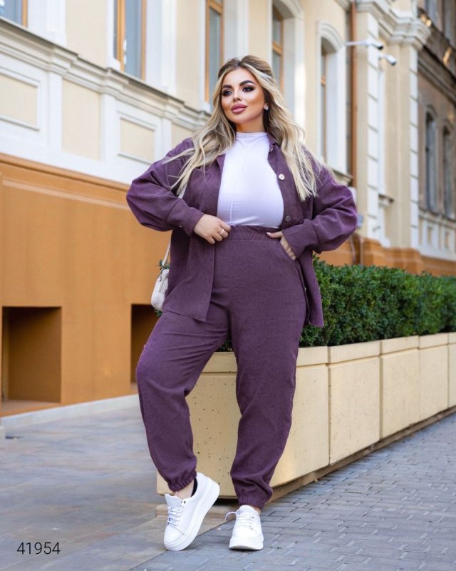 Жіночий костюм великих розмірів. Штани на резинці, повна посадка, сорочка на гудзиках (можна носити під майку в розтегнутому варіанті). Тканина: мікро вельвет.