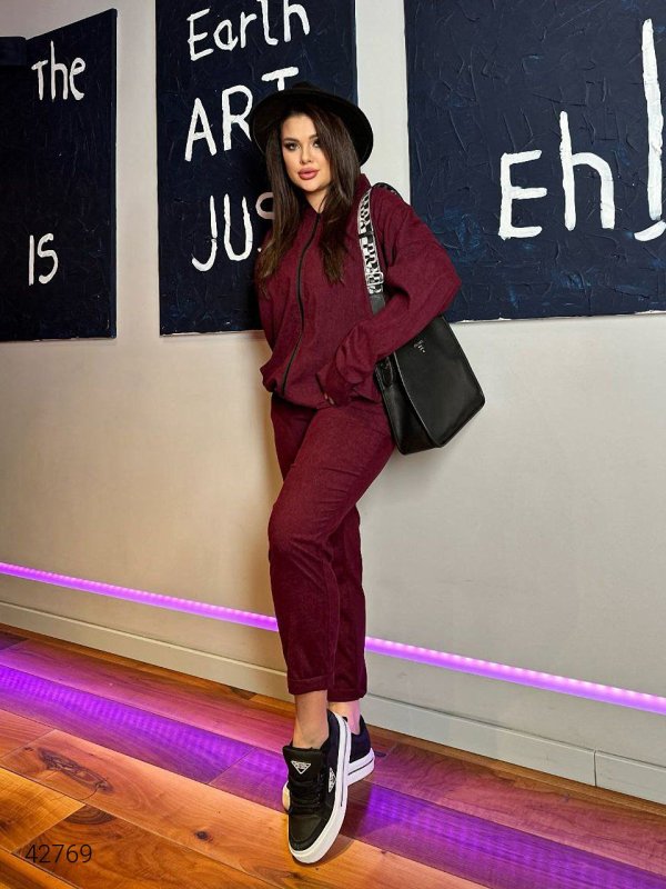 Костюм жіночий джогери та бомбер 42769 бордовий
