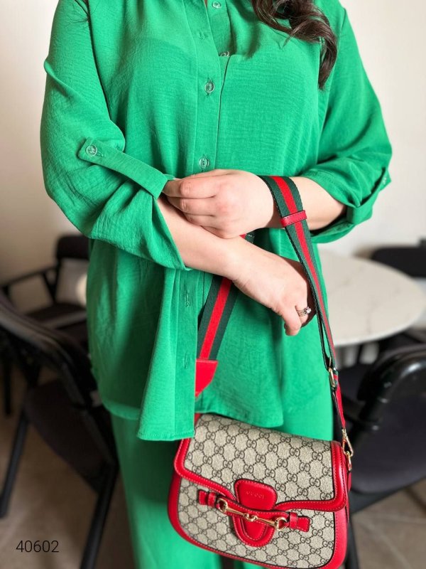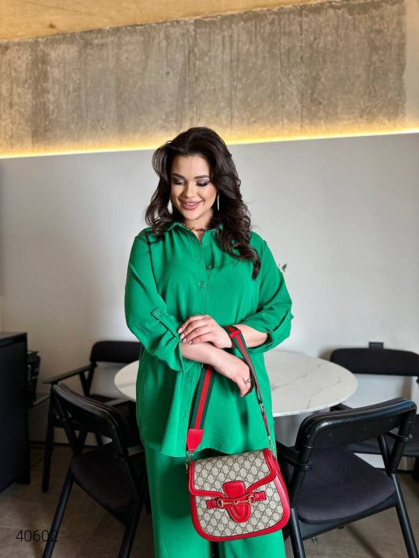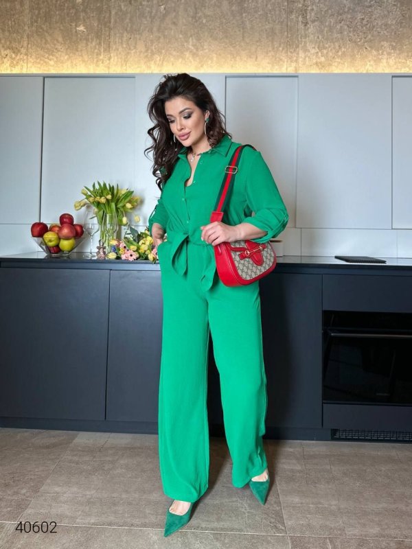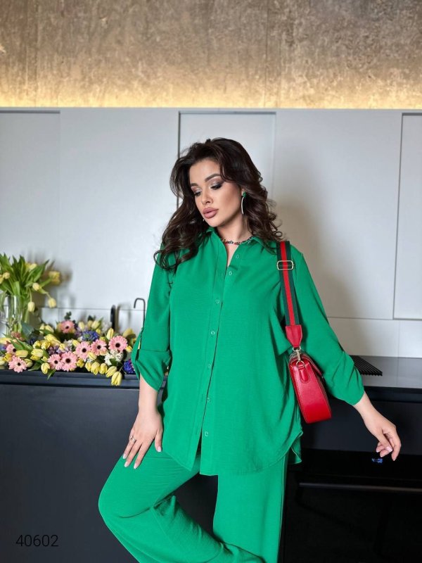 Костюм жіночий з сорочки та штанів 40602 зелений