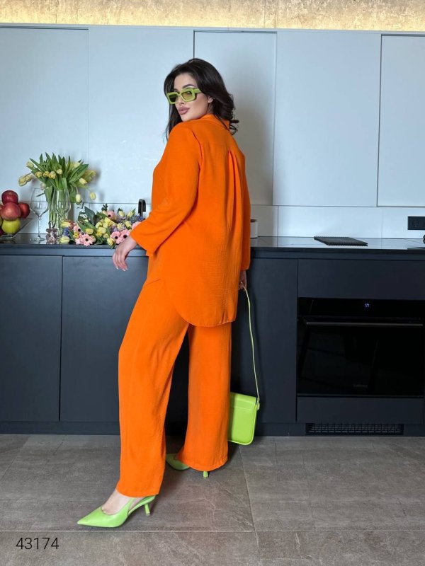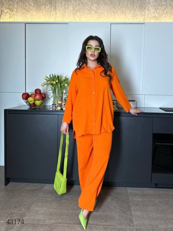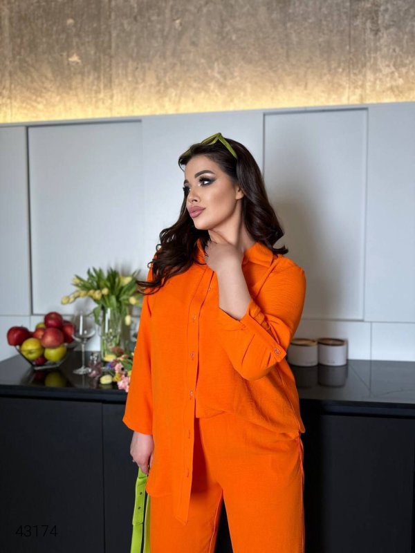 Костюм жіночий з сорочки та брюк 43174 помаранчевий