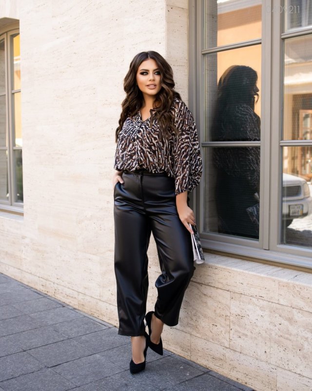 Деталі: висока посадка, кишені в рельєфах, штани застібаються на кнопку і блискавку.