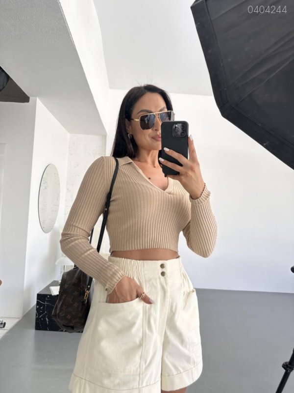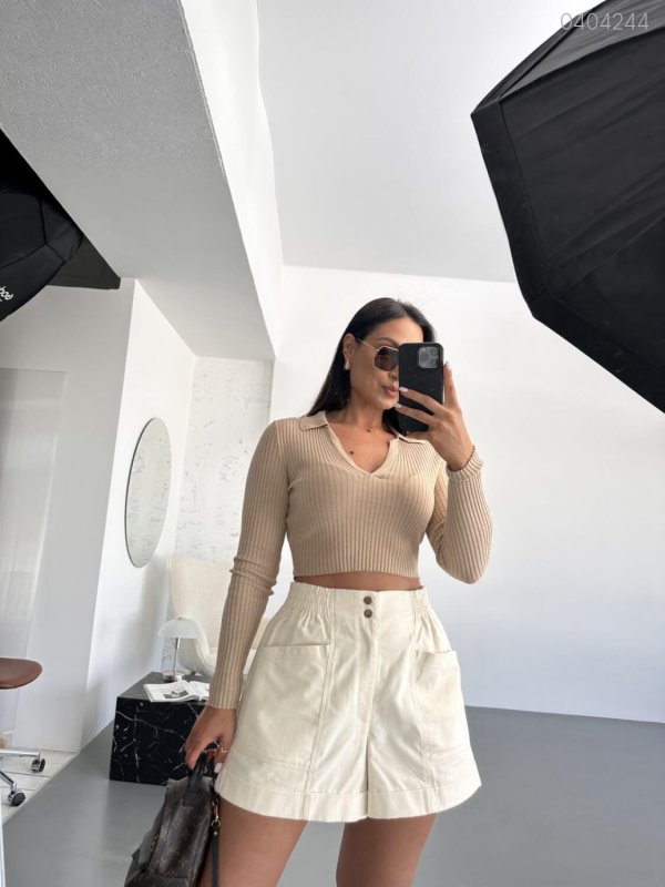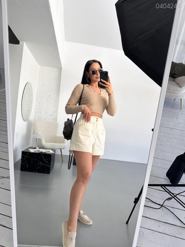 Кремові шорти №2 із застібкою на блискавці та кнопки