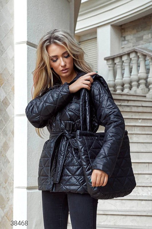 Куртка стьобана із сумкою. Тканина: плащування монклер.