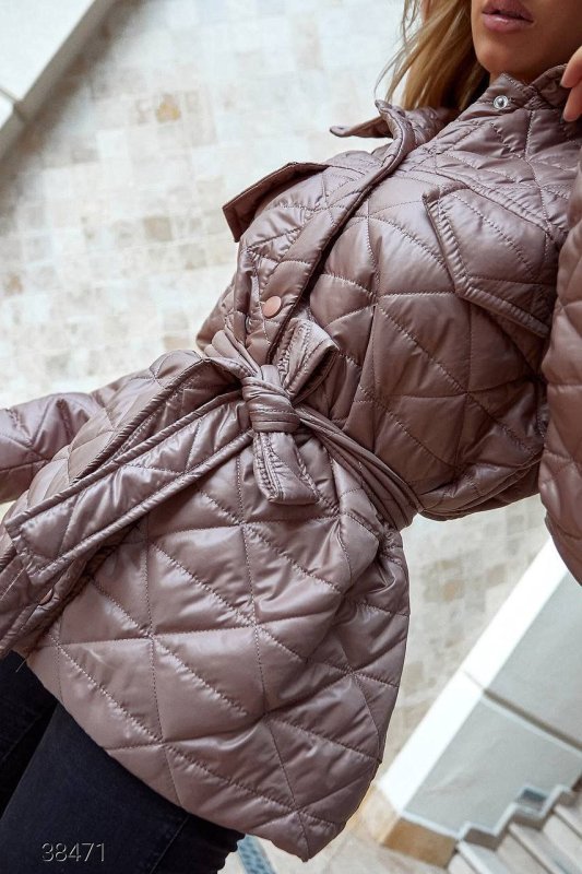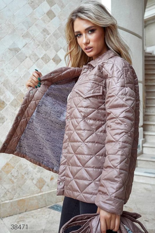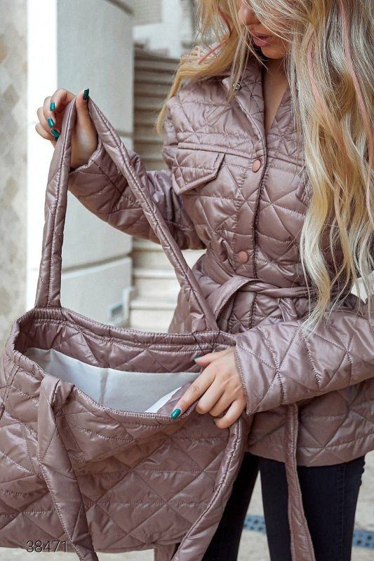 Куртка стьобана з сумкою 38471 бежевий