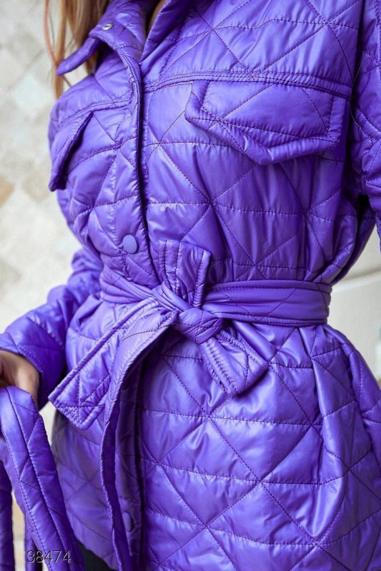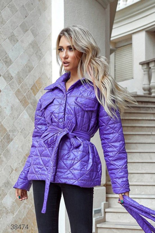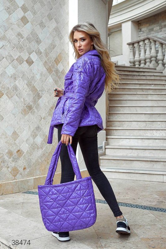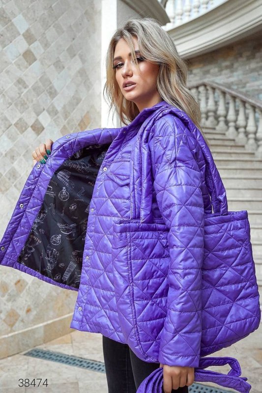 Куртка стьобана з сумкою 38474 бузковий