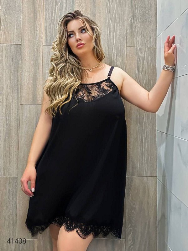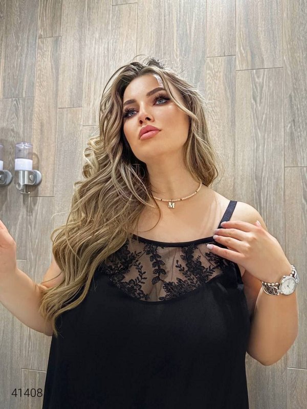 Нічна сорочка жіноча. Класична нічна сорочка, на регульованих бретелях. Попереду декорована сіточним мереживом, по низу - мереживо-війка. Тканина: креп шифон, дуже легка і приємна до тіла. Склад: поліестер - 95%, бавовна - 5%.