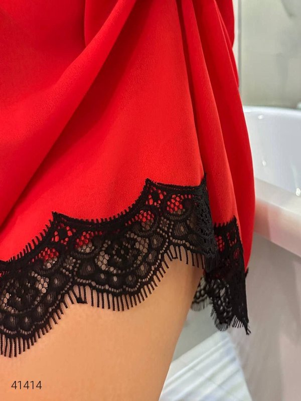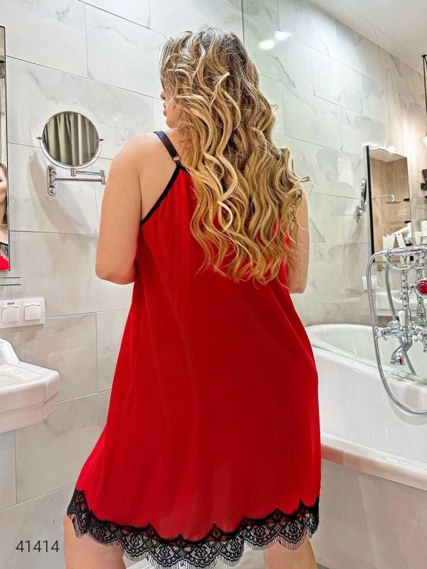 Нічна сорочка жіноча. Класична нічна сорочка, на регульованих бретелях. Попереду декорована сіточним мереживом, по низу - мереживо-війка. Тканина: креп шифон, дуже легка і приємна до тіла. Склад: поліестер - 95%, бавовна - 5%.