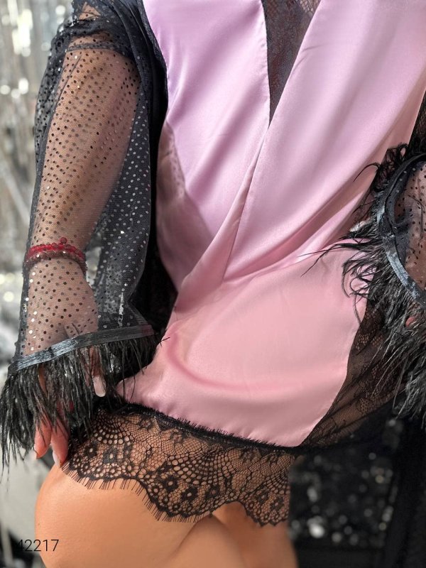 Нічна сорочка на бретелях, що регулюються, виконана з ніжного шовку в поєднання з сіткою.