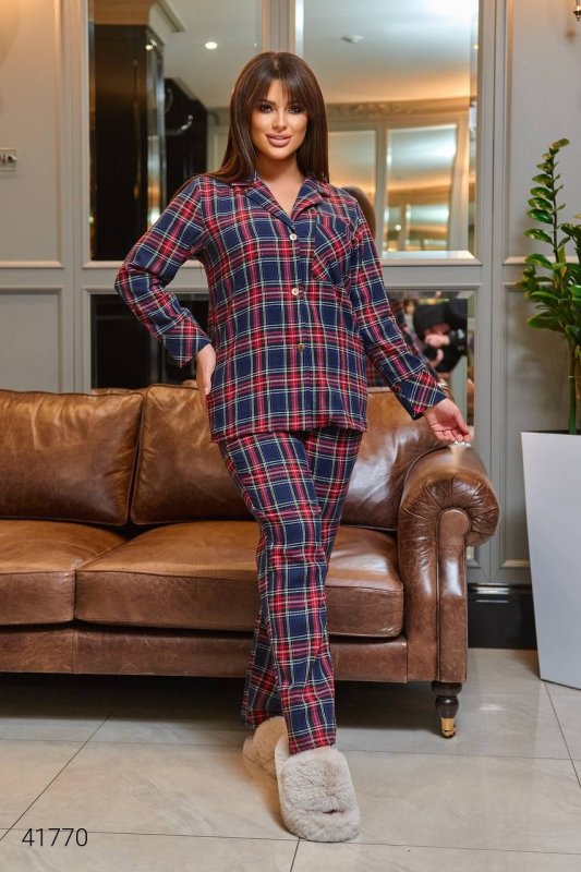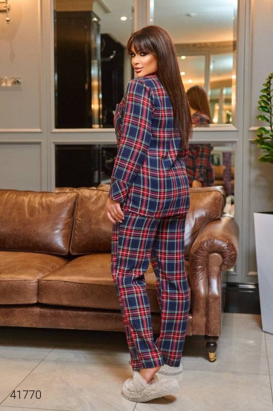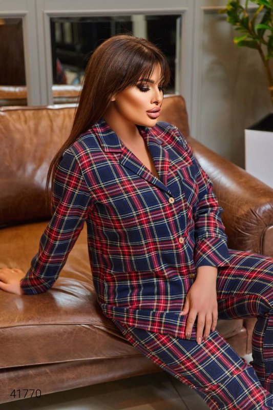 Жіноча піжама в клітку. Тканина: турецький трикотаж.