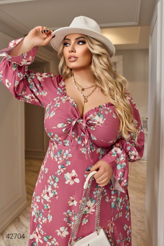 Сукня з розрізом. Сукню можна моделювати: мотузочки, розташовані в районі грудей, можна зав'язати бантиком або зробити виріз декольте глибшим. Також є шнурівка - регулює приталеність.