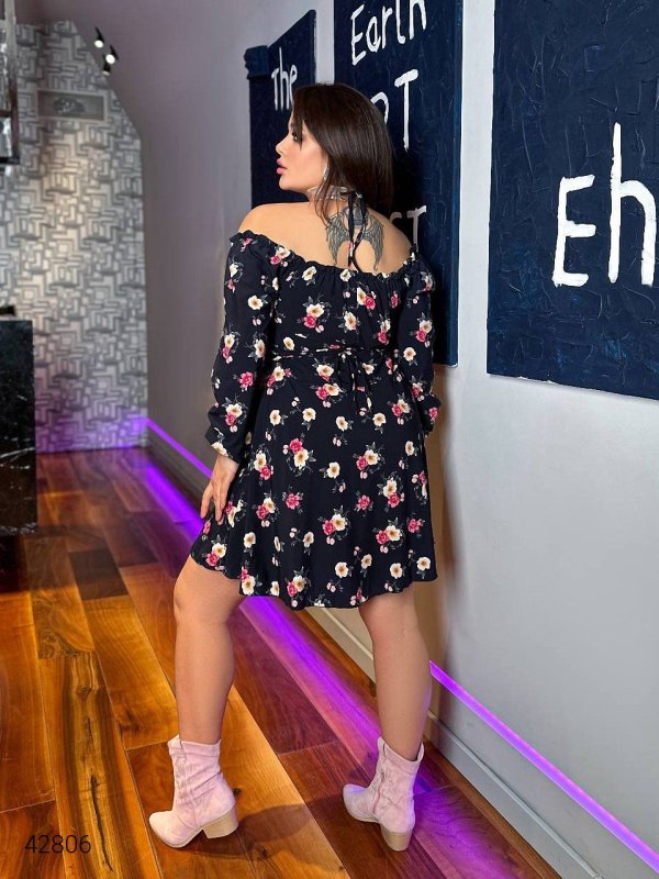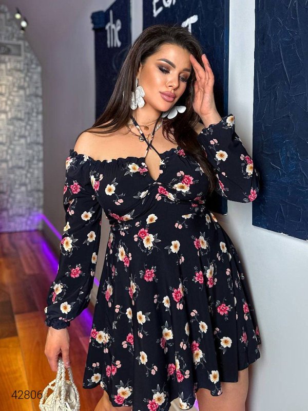 Сукня великих розмірів. Сукню можна моделювати: мотузочки, розташовані в районі грудей, можна зав'язати бантиком або зав'язати на шиї. Ззаду шнурівка - регулює приталеність. Рукав вгорі і внизу на гумці - можна оголити плечі і підтягнути рукав - зробити коротшим.