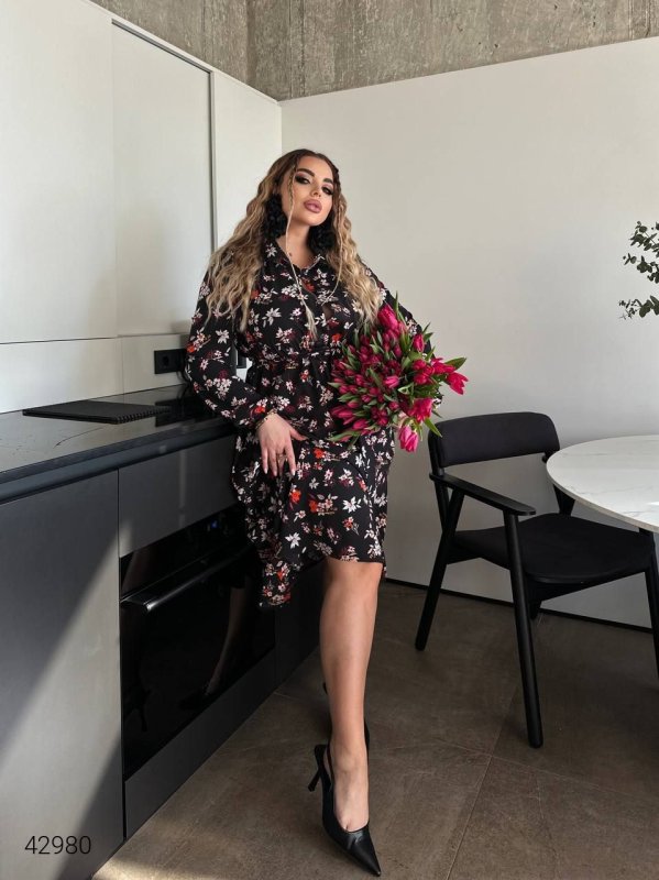 (ОГ - 92/100/108 см, ОТ - 92/100/108 см, ОС - 148/156/164 см,довжина рукава - 62 см, довжина виробу - 117 см)