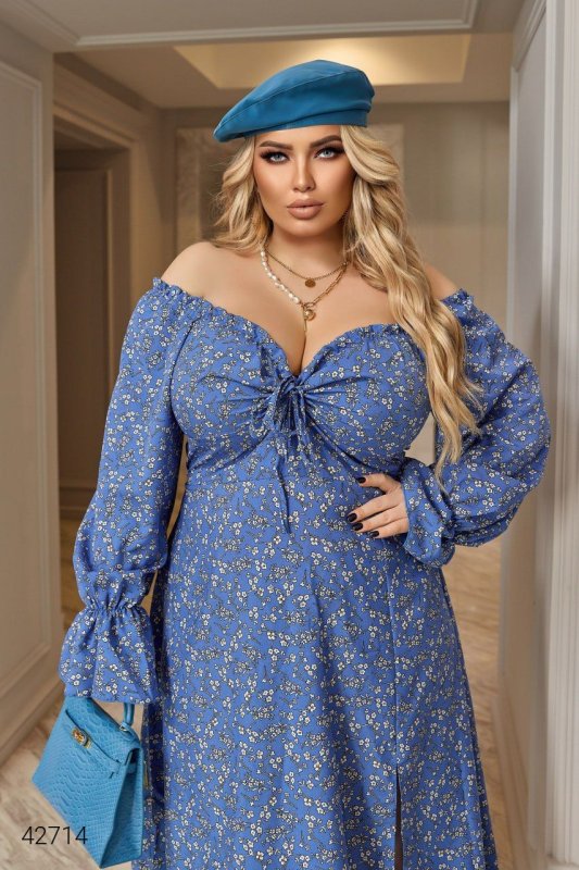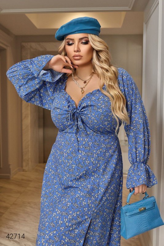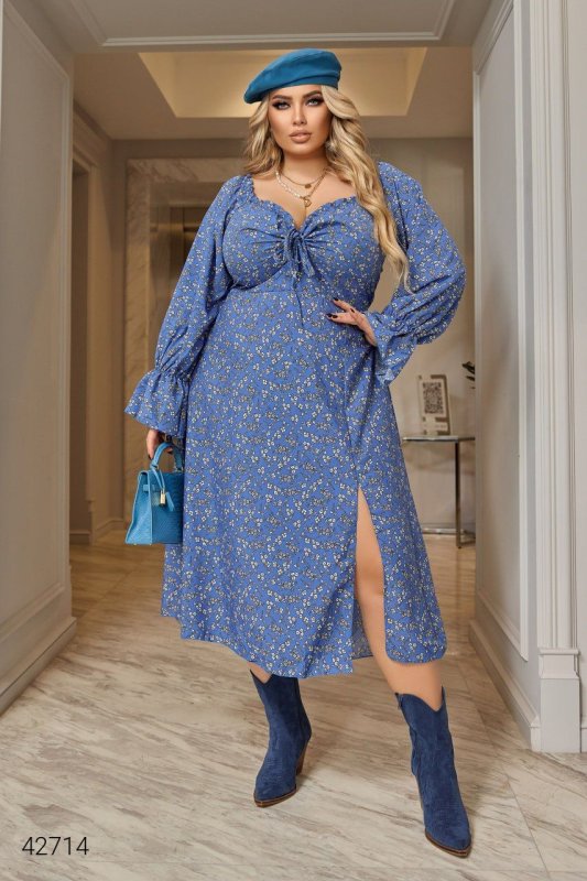 Сукня великих розмірів з розрізом 42714 блакитна