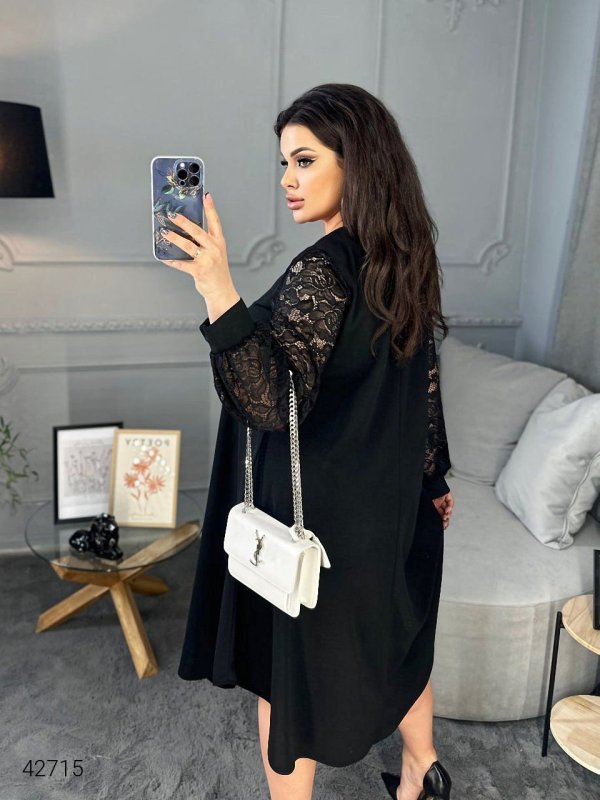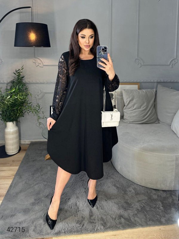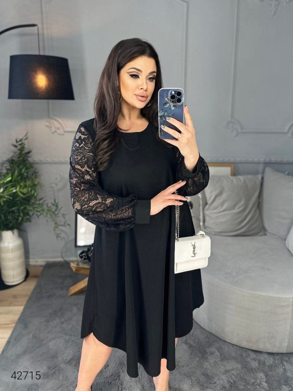 Сукня великих розмірів з рукавами з гіпюру 42715 чорний
