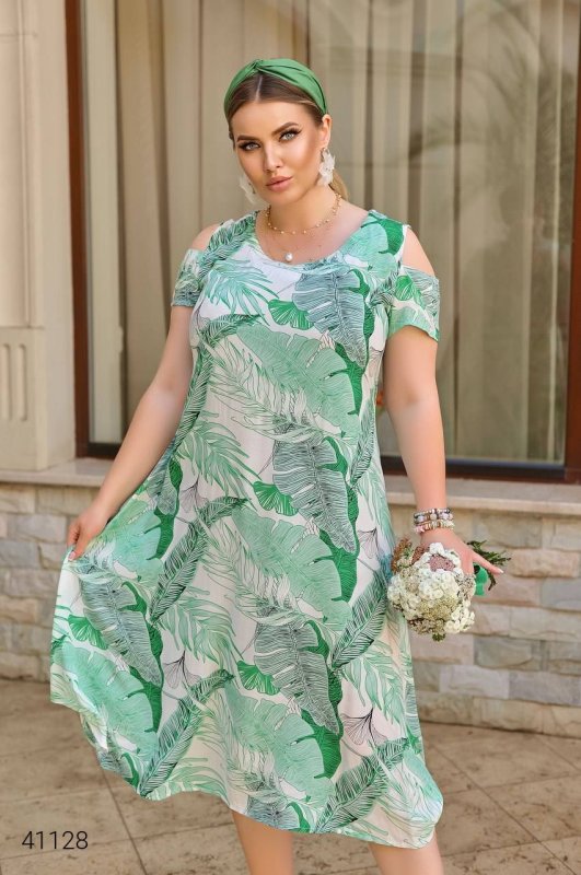 Платье с вырезами на плечах. Свободный покрой, овальный вырез, вырезы на плечах, ассиметричный нижний край.