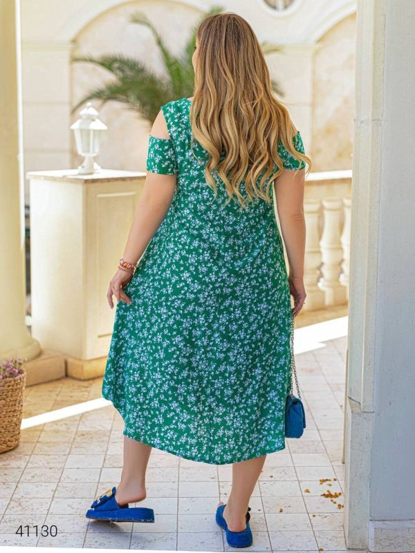 Сукня міді з вирізами на плечах 41130 зелений
