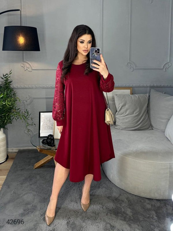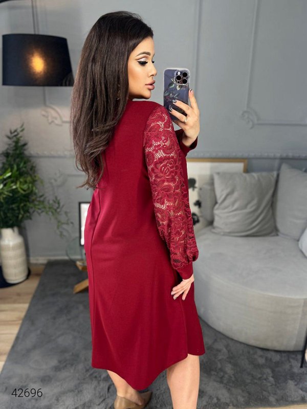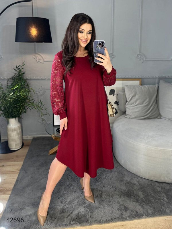 Сукня плюс сайз з рукавами з гіпюру 42696 бордовий